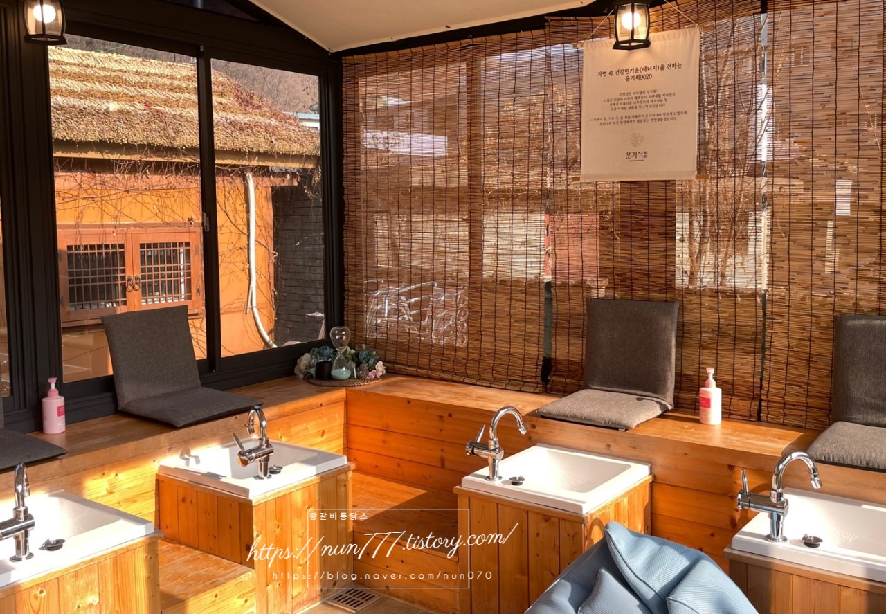 여행의 피로를 푸는 '운기석' 족욕을 저렴한 가격에 체험을 할 수 있는 곳도 마련되어 있습니다.