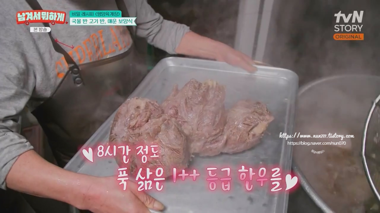 약 8~10시간 동안 뭉근하게 끓여주면 입게 착착 감기는 깔끔한 육수가 완성됩니다.