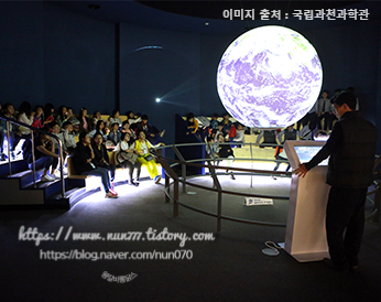 천체투영관: 돔 스크린에 투사되는 밤하늘과 우주 영상을 누워서 관람하는 방식이라 매우 편안하며, 영상미가 환상적입니다. (평가: 과천과학관의 압권 중 하나)