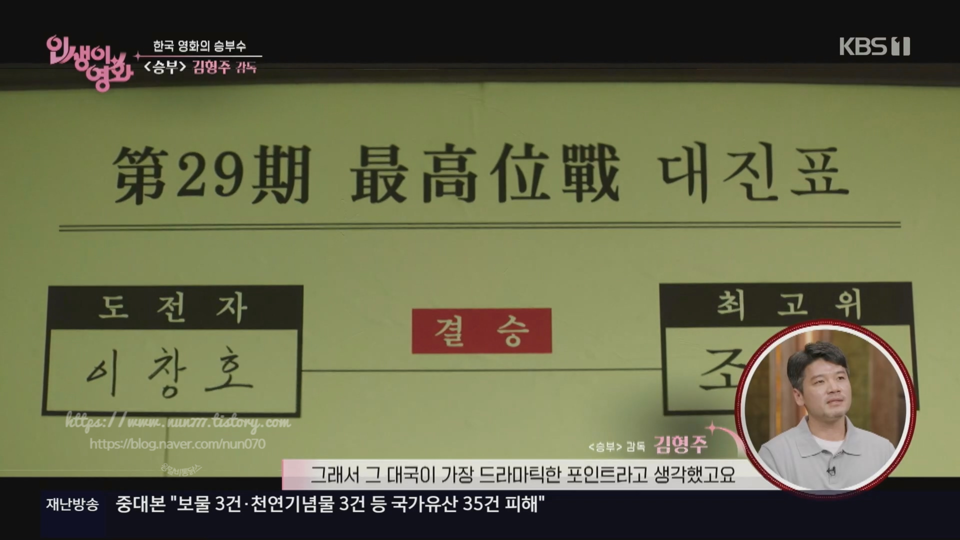 결국 감독이 선택한 지점은 이창호가 조훈현을 처음으로 꺾었던 1990년 제29기 최고위전이었습니다. 감독은 바로 이 대국이야말로 두 사람의 서사가 교차하는 가장 드라마틱한 포인트라고 생각했습니다.