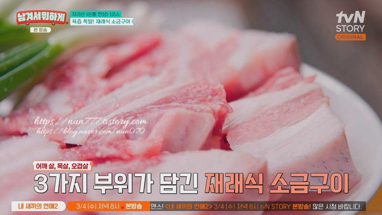 ※ 지리산 청정골에서 온 산청흑돼지는 산지에서 나고 자라 육질이 탄탄하고 식감이 쫄깃한 것이 특징입니다.